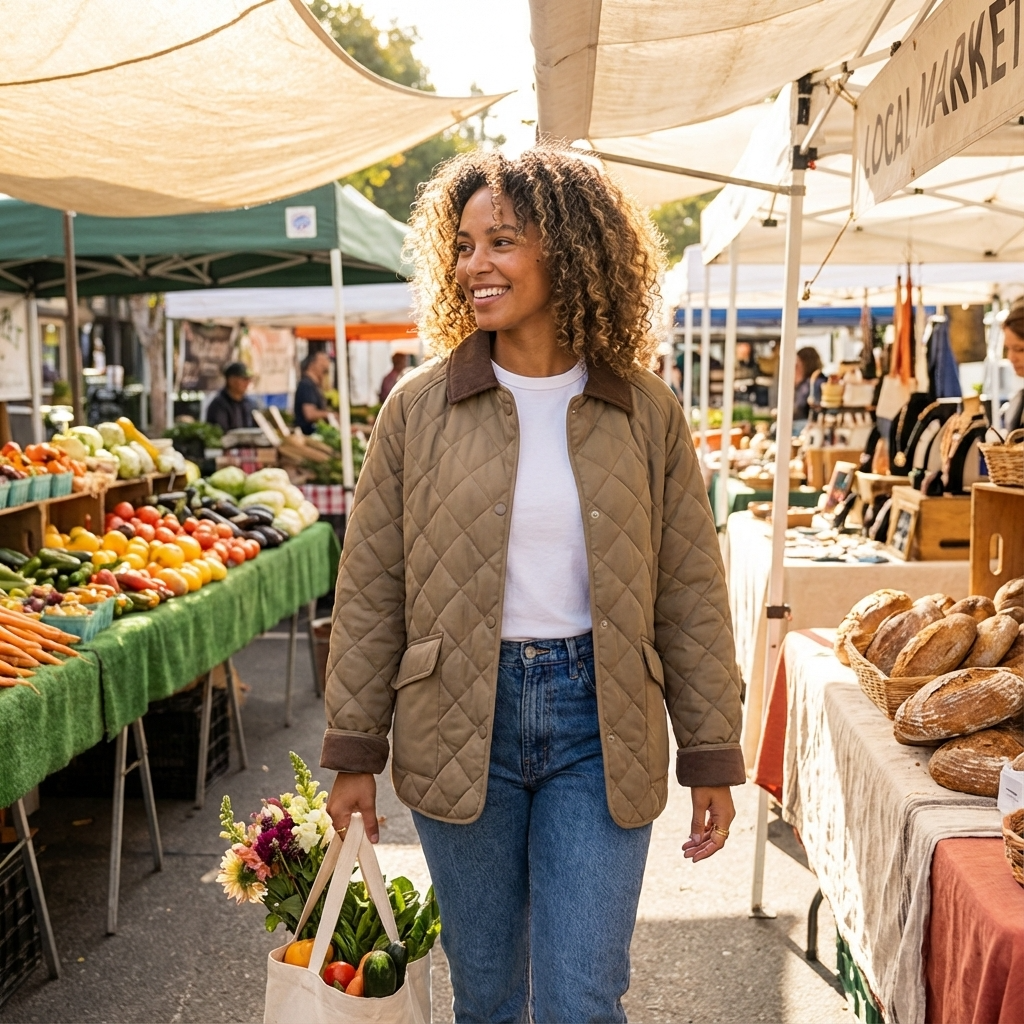 La veste matelassée pour femmes Avery offre un look extérieur soigné conçu pour un port quotidien sans effort. Dotée d’un motif matelassé classique en losanges et d’un col contrastant distinctif, cette veste allie le charme vintage à une polyvalence moderne. Sa silhouette structurée mais décontractée la rend idéale pour les journées décontractées en ville, les superpositions saisonnières et un style quotidien où confort rime avec sophistication discrète.