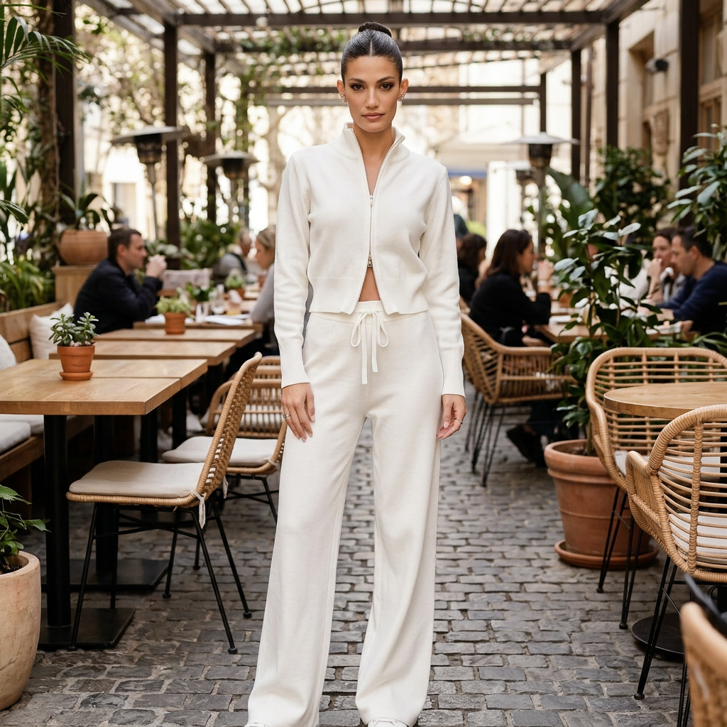 Meet your new wardrobe essential. The Demi Women's Zip-Up Knit Cardigan is crafted from a soft, fine-knit fabric with a beautifully relaxed silhouette that feels as elevated as it looks. Available in rich tones including deep burgundy, blush pink, heather grey, cream, and espresso brown, this cardigan features a sleek full-length centre-front zipper, a structured stand collar, and neatly ribbed cuffs and hem band for a polished, intentional finish. One variant features a cosy hood for effortless off-duty styling. Worn open or zipped up, it pairs seamlessly with matching wide-leg knit trousers for a coordinated, luxe-leisure look that takes you from a quiet morning at home to a stylish afternoon out.
